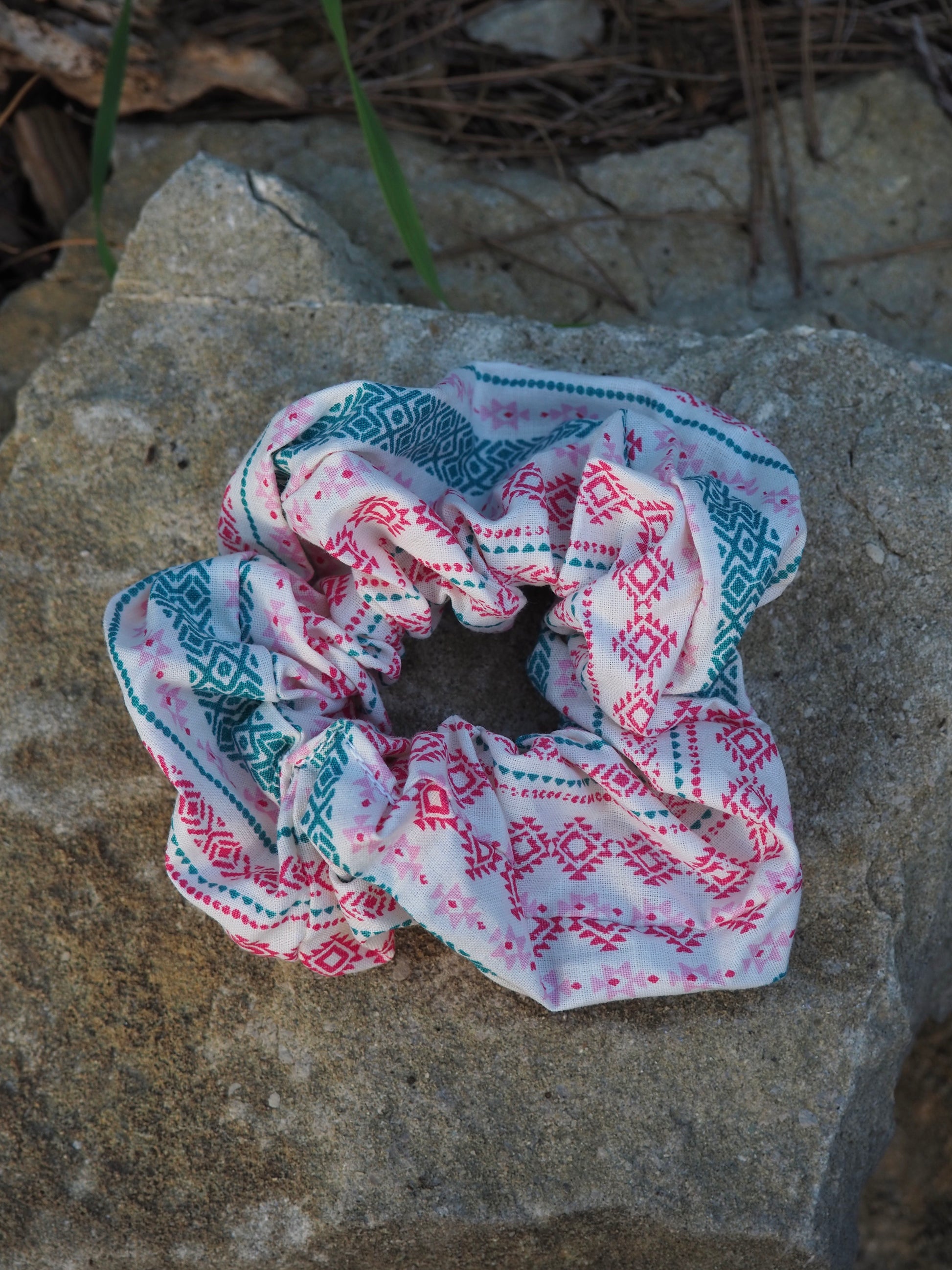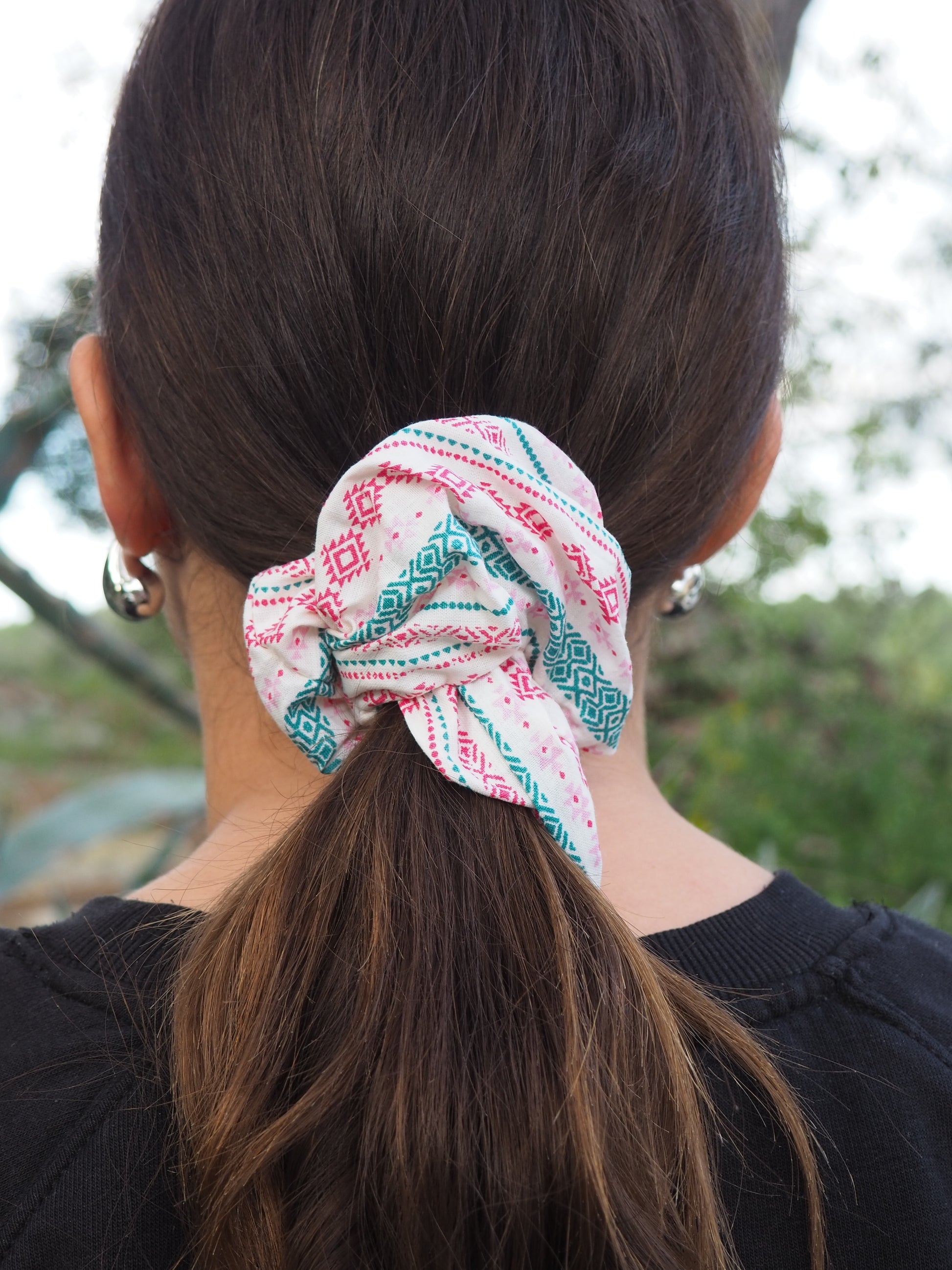 Ce chouchou est 100% fabriqué à la main, en utilisant des tissus de qualité qui garantissent durabilité et confort.