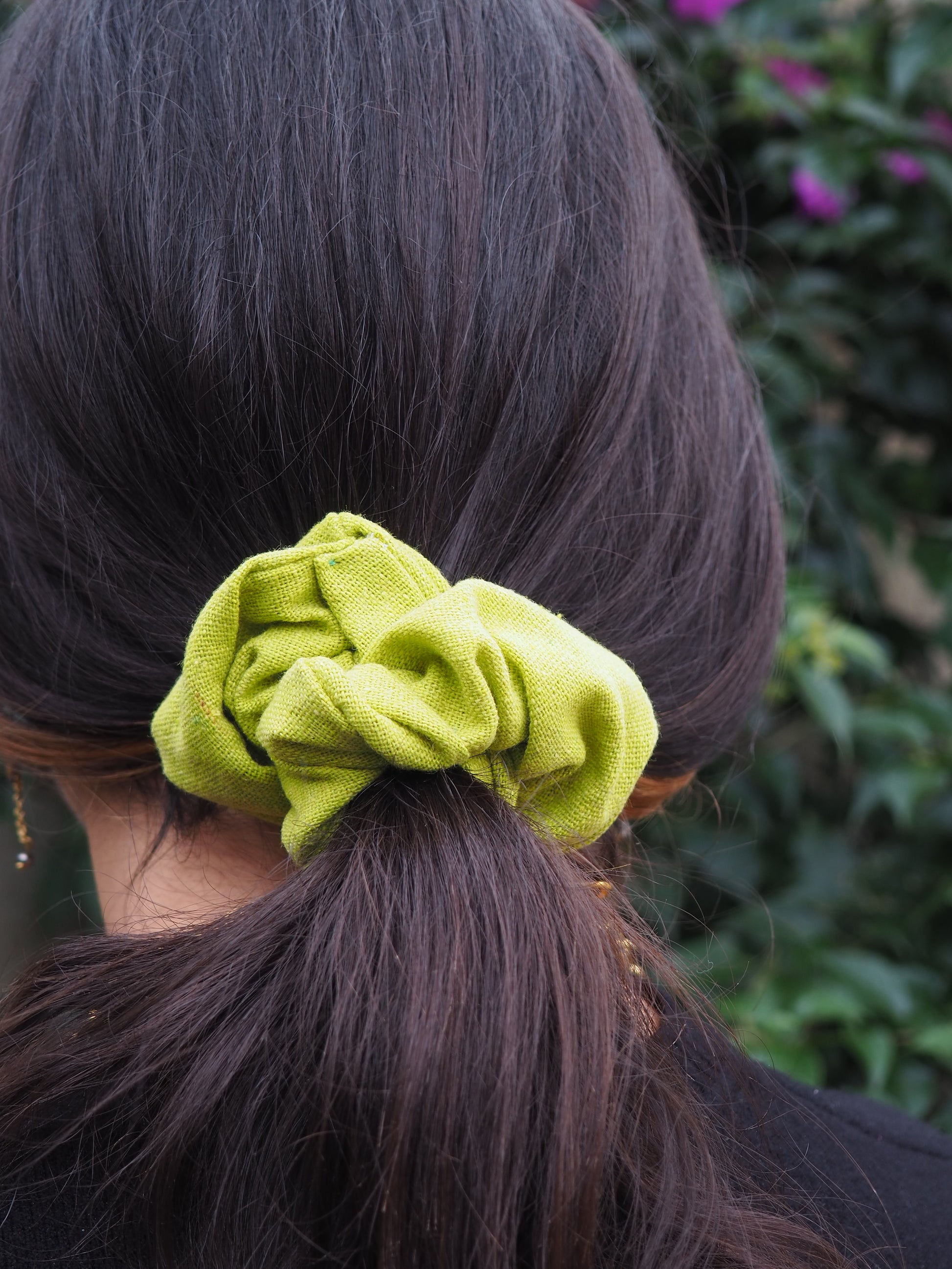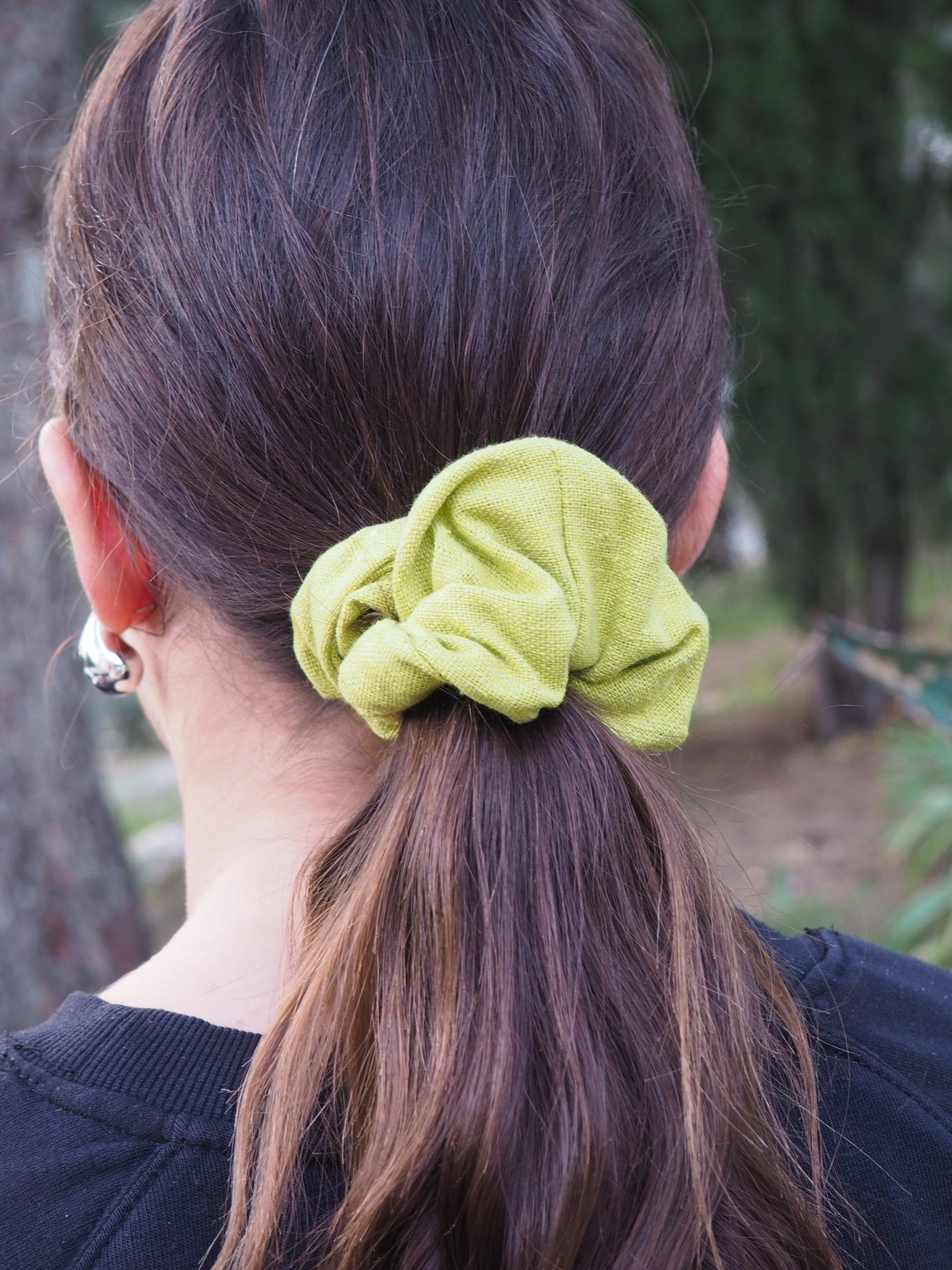 Ce chouchou est 100% fabriqué à la main, en utilisant des tissus de qualité qui garantissent durabilité et confort.