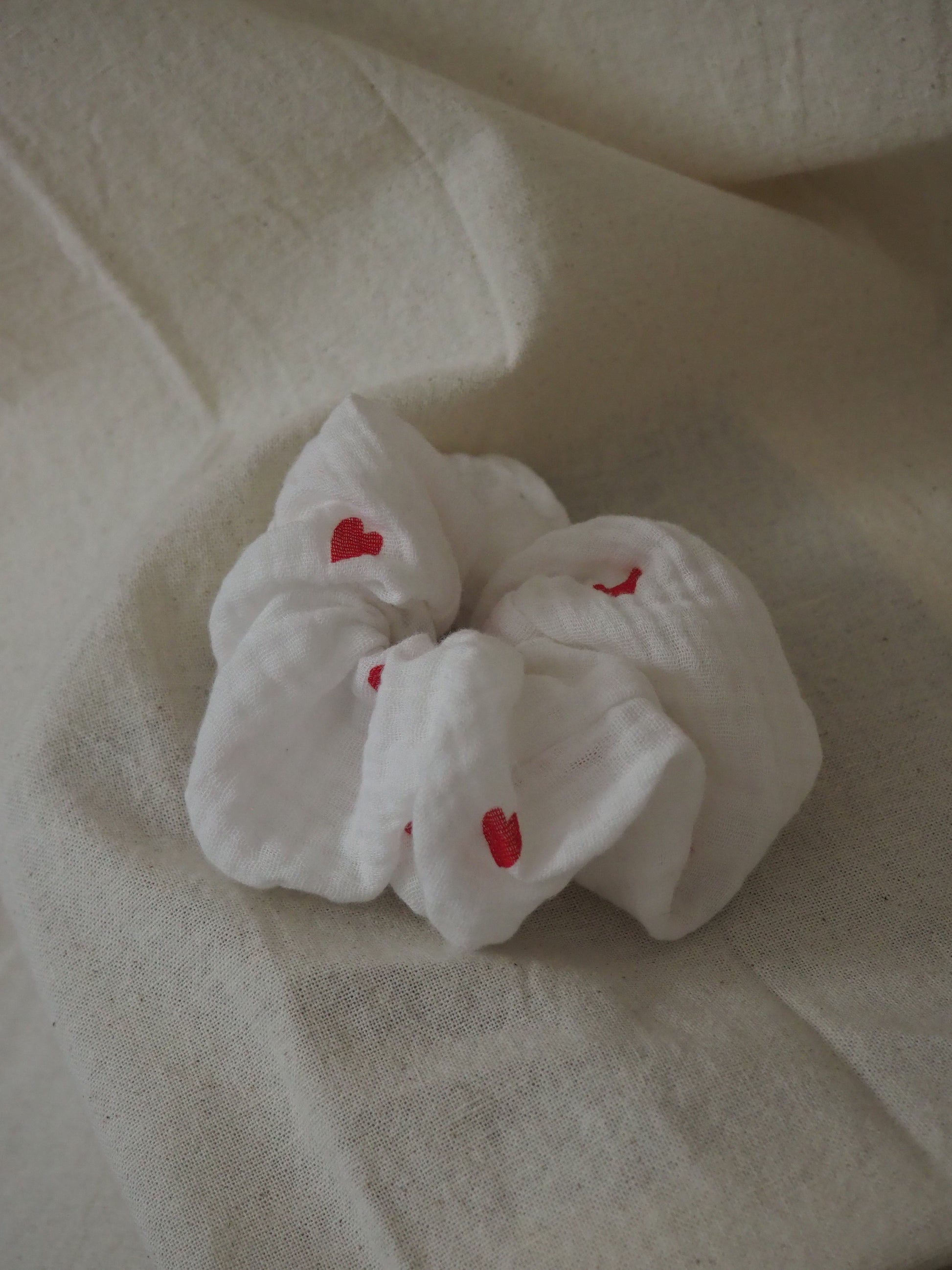 Ce chouchou est 100% fabriqué à la main, en utilisant des tissus de qualité qui garantissent durabilité et confort.