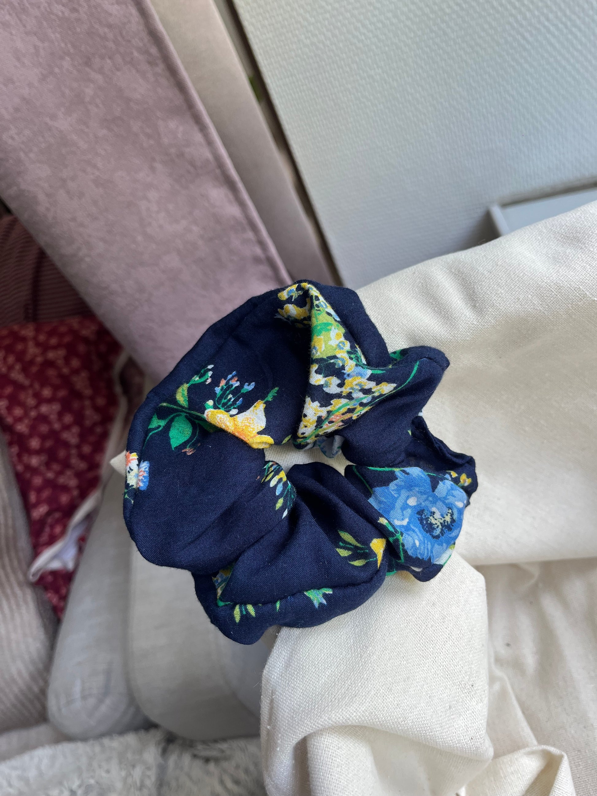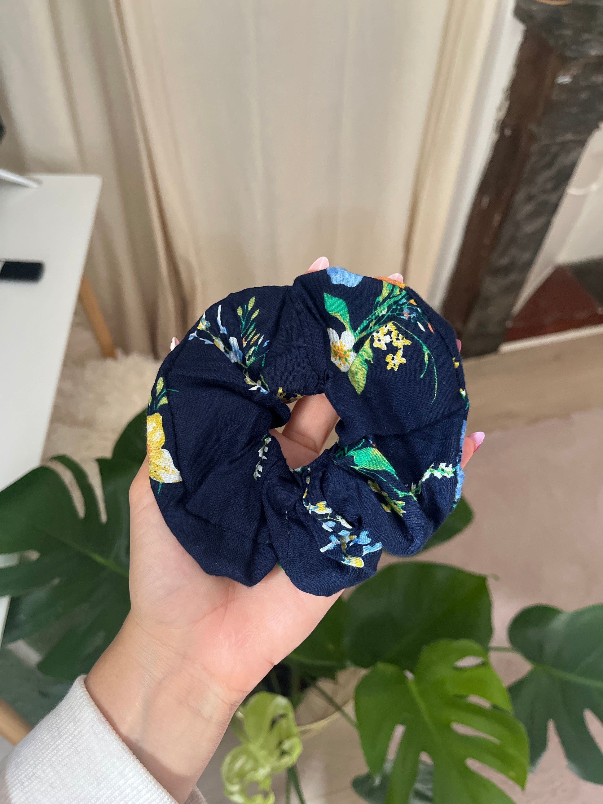 Ce chouchou est 100% fabriqué à la main, en utilisant des tissus de qualité qui garantissent durabilité et confort.
