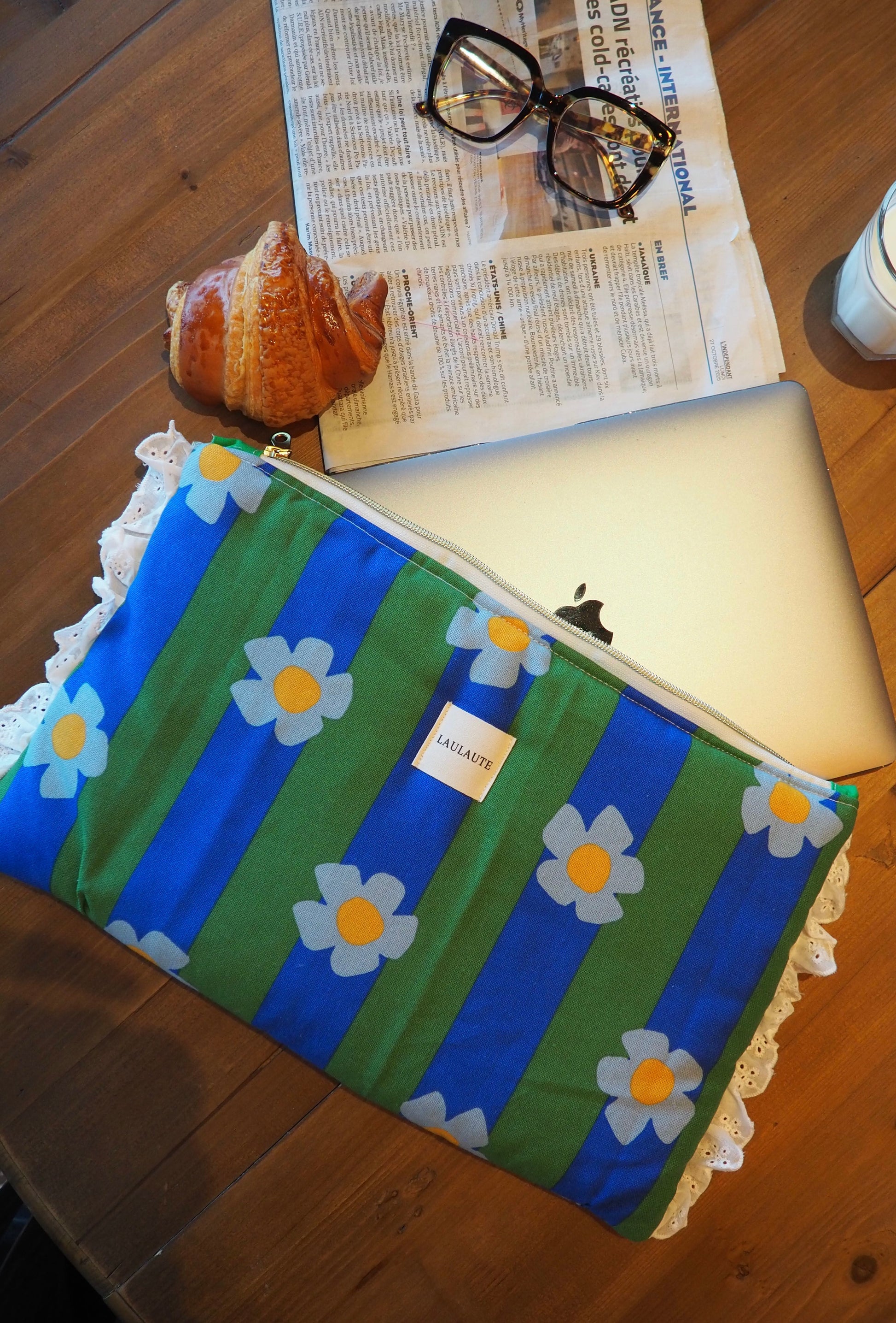 Entièrement doublée et délicatement matelassée, cette housse offre une protection douce et efficace à vos appareils tout en révélant le charme du fait main.